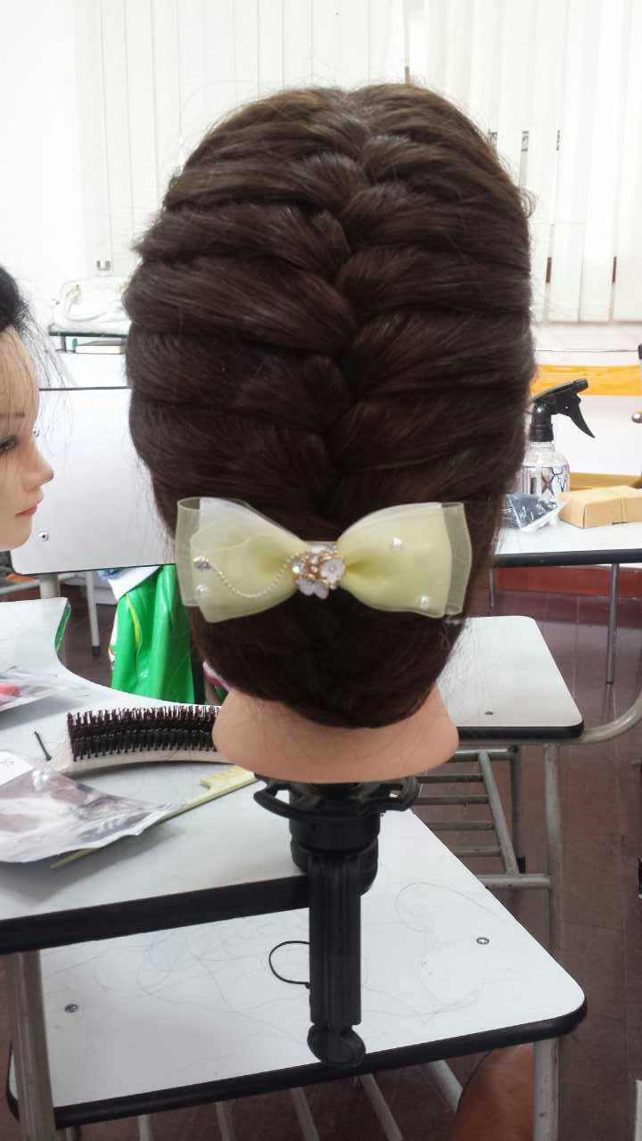 今天上海新东坊化妆学校学生刘玲和大家分享一个学习盘发的课程--蜈蚣辫,一般用于生活和新娘妆,接下来我就来讲下如何扎吧。
