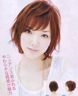 日系发型总是给人一种甜美的感觉,日本MM和中国MM的头皮和发质都比较接近,所以很多日本MM也存在头发稀少的问题。看看人家是怎么解决的吧?把头顶大部分的发量头放在刘海上,巧用刘海制造厚重感,将头发成分两束,发尾稍微的C字型内抠。看起来整个头部都非常的饱满。