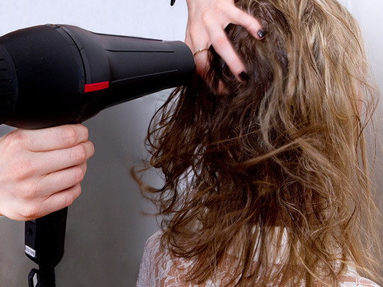 如果摩丝和吹风机完成的最后效果太凌乱,那就用梳子稍稍梳理一下,如上图所示,让自然纹理占主导,不要太过混乱。