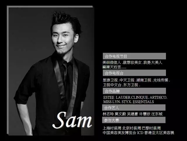 Sam老师,来自台湾的帅气明星造型师!像林志玲、莫文蔚、吴建豪等大明星的造型都出自他手。