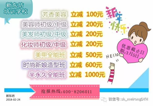 新东坊针对:美容师培训,化妆师培训,美甲师培训,美发师培训,形象设计师培训,初级、中级、高级、技师、高级技师培训,就业培训、创业培训,新娘彩妆培训、影视化妆造型培训、白领形象设计培训、演员明星各种造型、各种主持人模特造型,芳香美容专项。