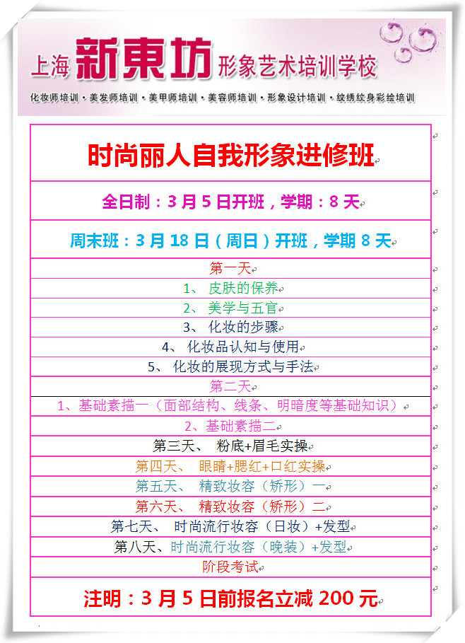 新东坊美容师培训,化妆师培训,美甲师培训,美发师培训,形象设计师培训,初级、中级、高级、技师、高级技师培训,就业培训、创业培训,新娘彩妆培训、影视化妆造型培训、白领形象设计培训、演员明星各种造型、各种主持人模特造型。