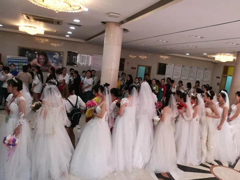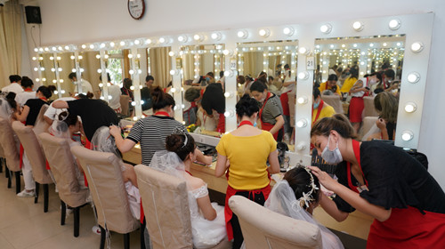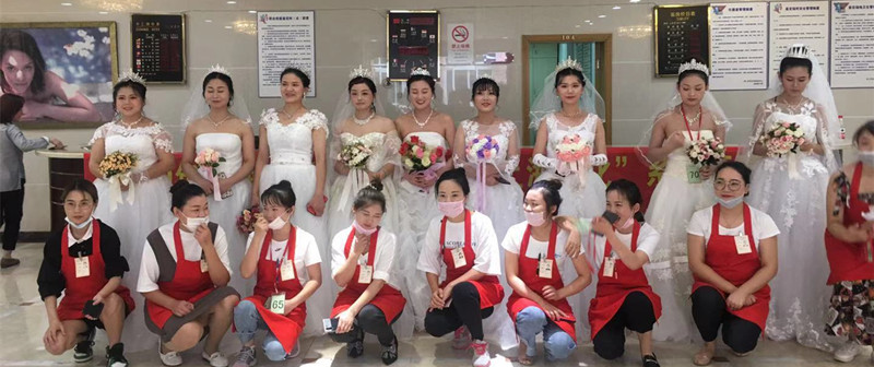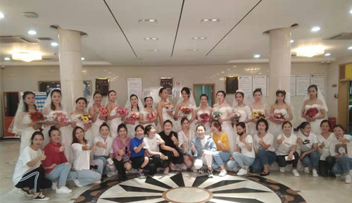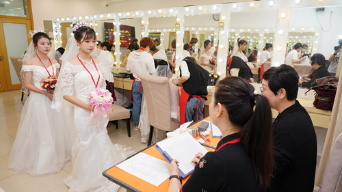 参赛选手耐心细致,用手中一支笔或一支小刷子描化出一个个美美新娘。