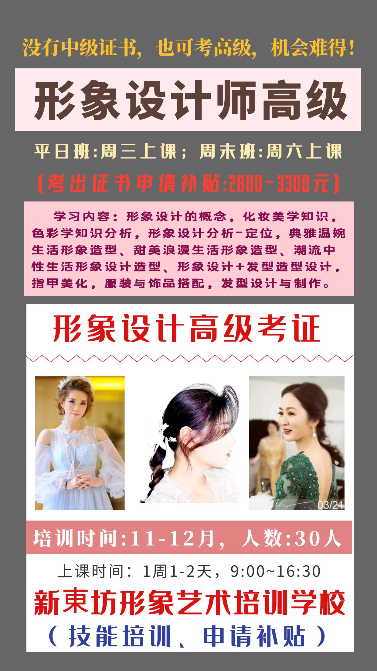 形象设计师高级/三级,一次2800~3300元