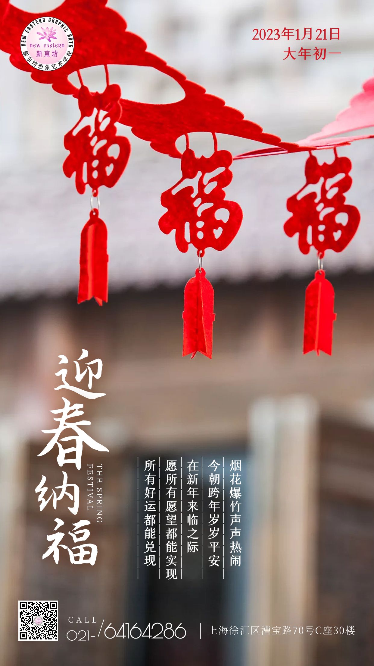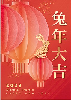 新年好呀、大红灯笼挂门上、大红春联贴门上、浓浓年味在心上、合家欢乐漾心上、喜庆祥和写心上、兔年祝福发手上、愿你生活洋洋得意、日子甜甜蜜蜜!