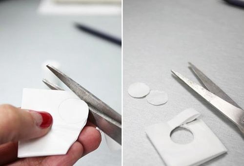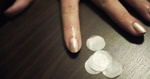 如果你有圆形的美甲贴片,这一步就可以省略掉。如果你没有的话,用吸油面纸能很方便的做出一次性的贴片。