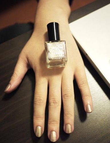编辑选择的是美宝莲沙龙奥秘甲油的金色款,为了能透出更加亮的金色,涂上了两层。