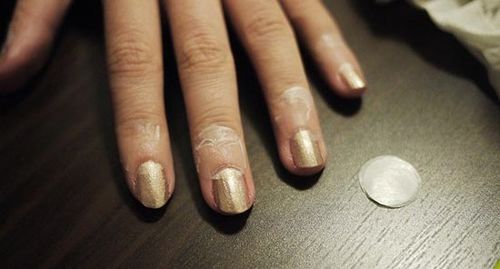 图3:直至纸片基本干燥以后,颜色变回白色,但是仍会牢牢的紧贴指甲表面