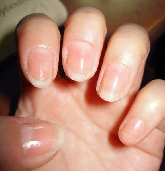步骤一:先把自己的指甲打磨好形状,然后涂上底油