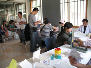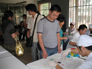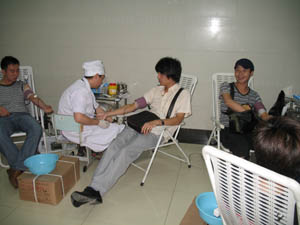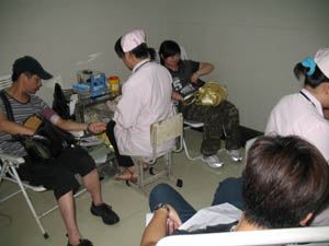 我校师生于2008年7月19日积极参与红十字会举办的“献血救人、无偿献血”活动。