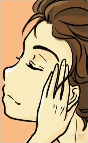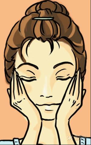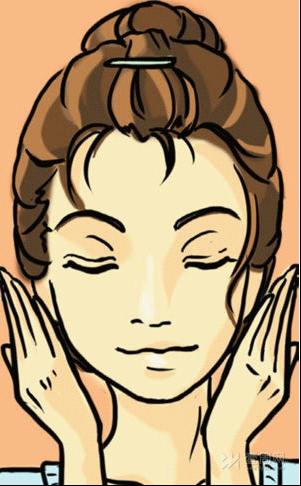 淋巴按摩step2 其余的手指覆盖住脸颊,并用整个手掌按压脸部