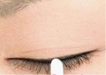 闭眼后,用棉签来回晕染上眼线,一般要擦拭4到5下,尽量在眼中央晕染的宽一些。