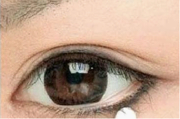 完成图,可以看到眼睛两端的眼线比较细,中央部分粗一些。有增大黑眼球宽度的效果。