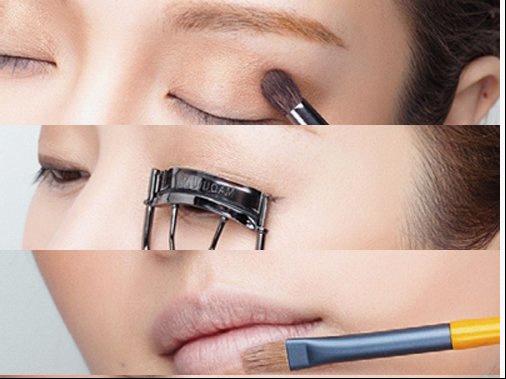 化妆步骤三:使用睫毛夹对睫毛进行夹卷处理。从睫毛的根部开始,把睫毛分成三段夹卷翘。