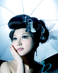 妩媚迷人:在眼妆上舍弃了喜庆的粉色,而是用端庄的紫色代替,睫毛膏与眼线笔都采用了黑色,眼尾还做了明显的上翘,配合黑色的饰品,让新娘透出一股妩媚诱惑。