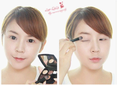 Step 3:选择浅咖色眼影在整个眼窝处晕染。