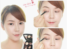 Step 4:利用金棕色眼影在双眼皮处推开,形成一道眼影式的眼线。