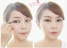 Step 6:选择黑色的眼线笔沿着睫毛根部勾画眼线,可适当加粗,在眼尾处下垂平拉。