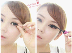 Step 7:在上睫毛处粘贴卷翘浓密的芭比型假睫毛,然后刷上睫毛膏,让眼妆更精致。