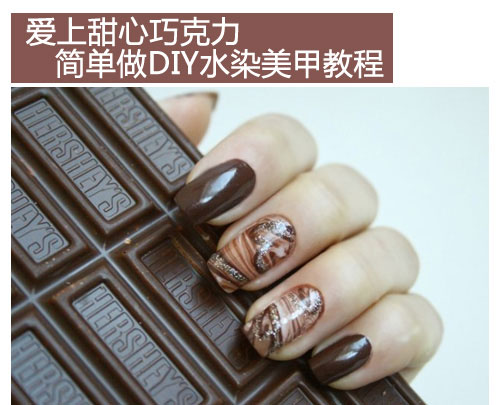 女生天生喜欢吃甜食,巧克力更是最爱,广告片里丝滑的巧克力让人流足口水,小编今天就教你一款甜心巧克力的水染美甲教程,教你如何简单做出丝滑巧克力的感觉。