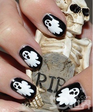 万圣节另类骷髅美甲也可以做的这么美 2013-10-31 9:20:16